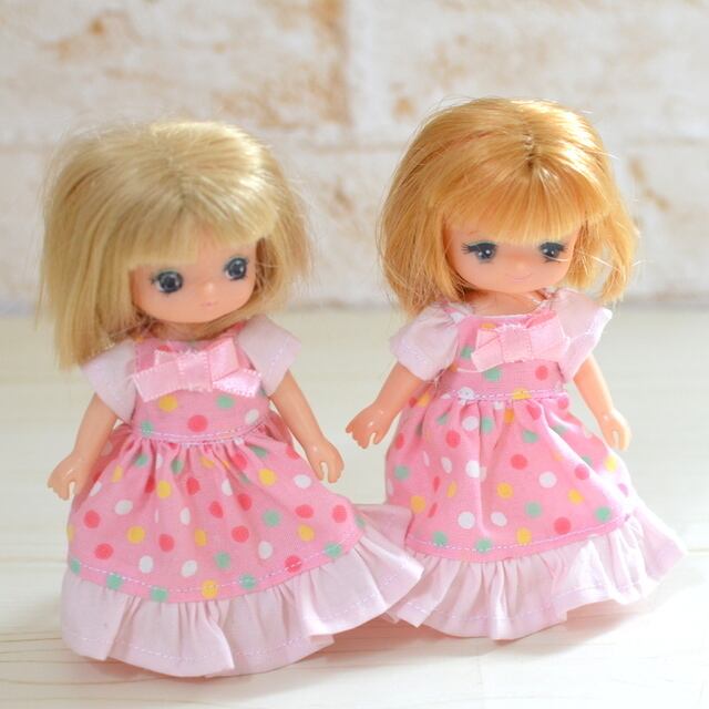 ミキちゃんマキちゃん、オビツ11ボディサイズ ピンクのワンピース