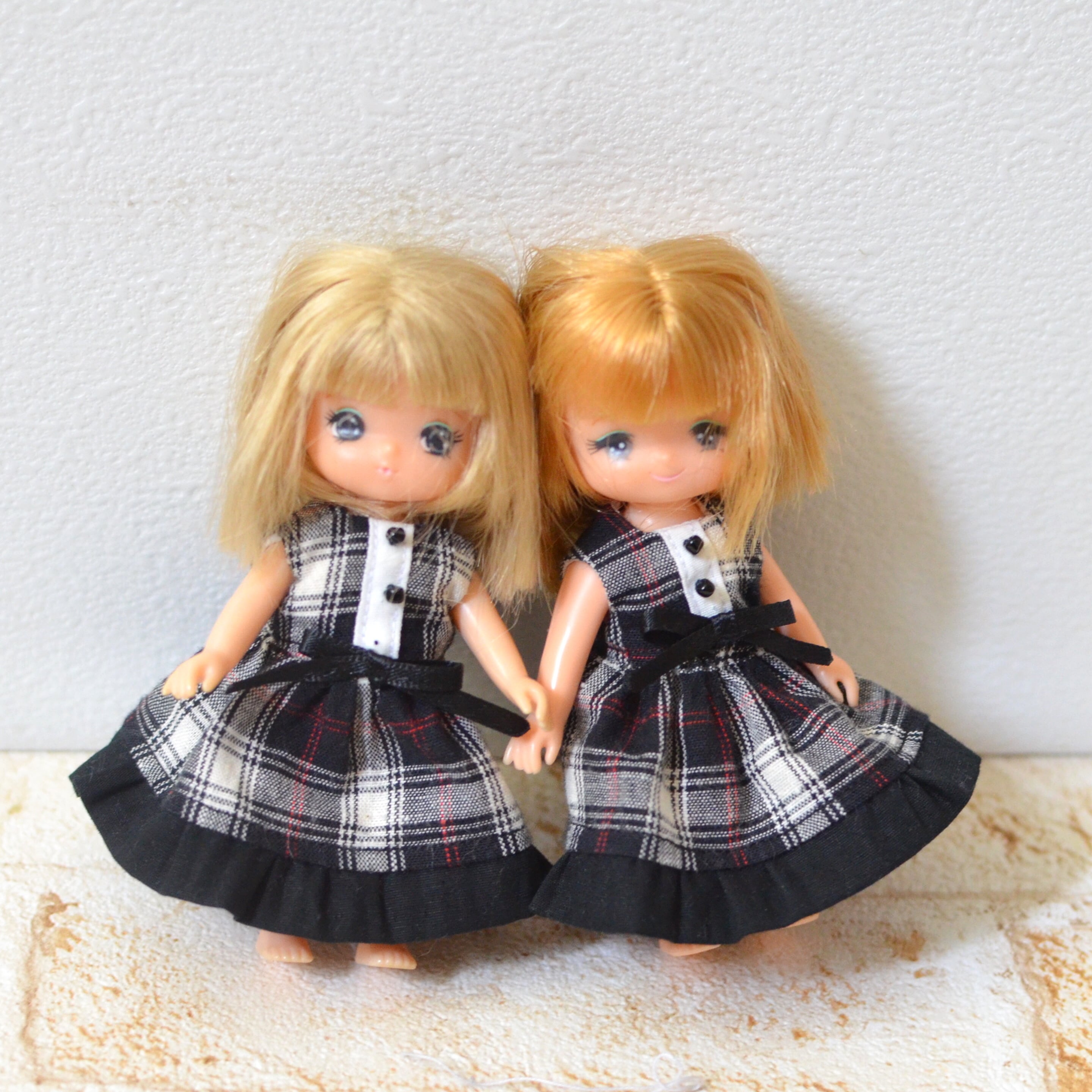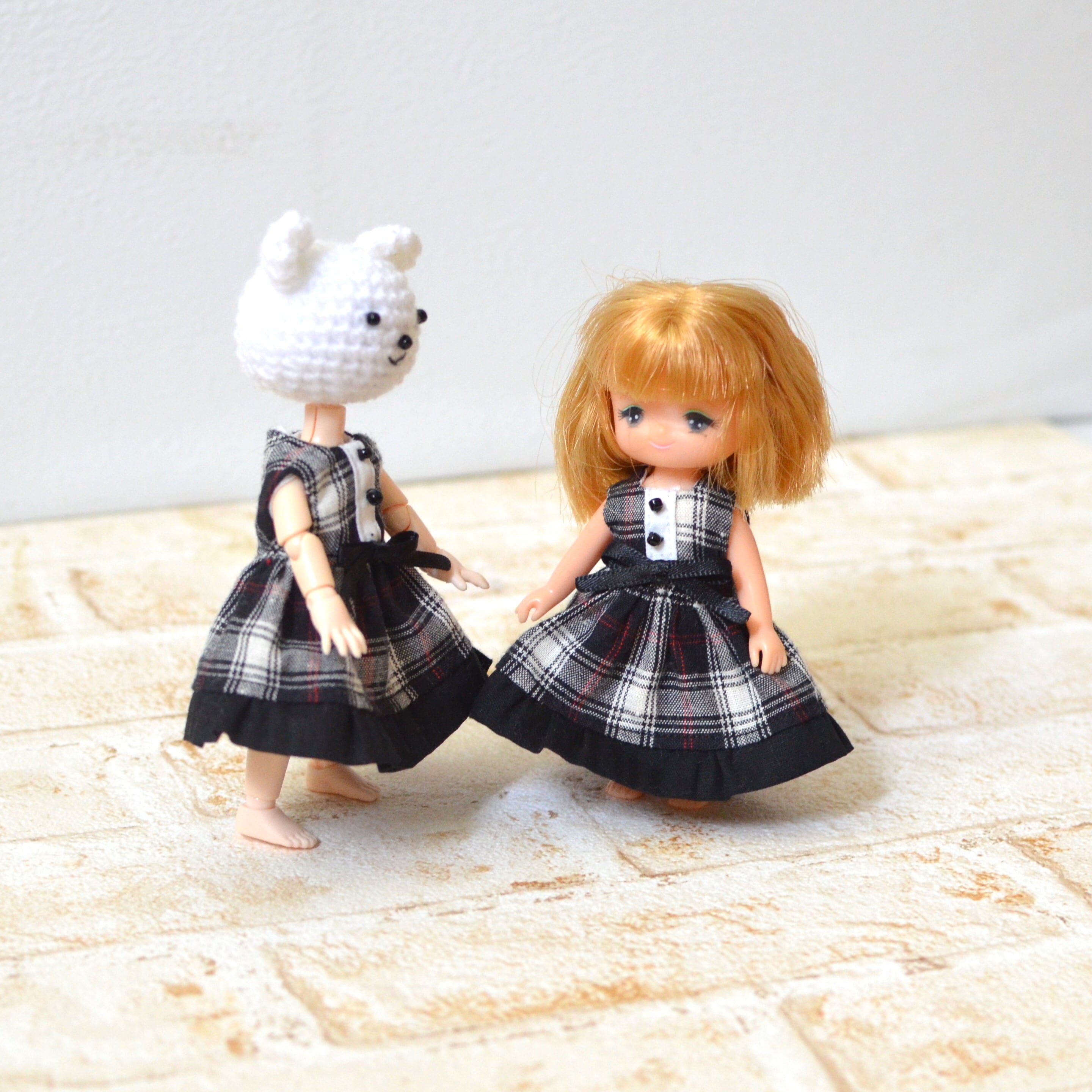 ミキちゃんマキちゃんサイズ、オビツ11ボディサイズ チェックのワンピース