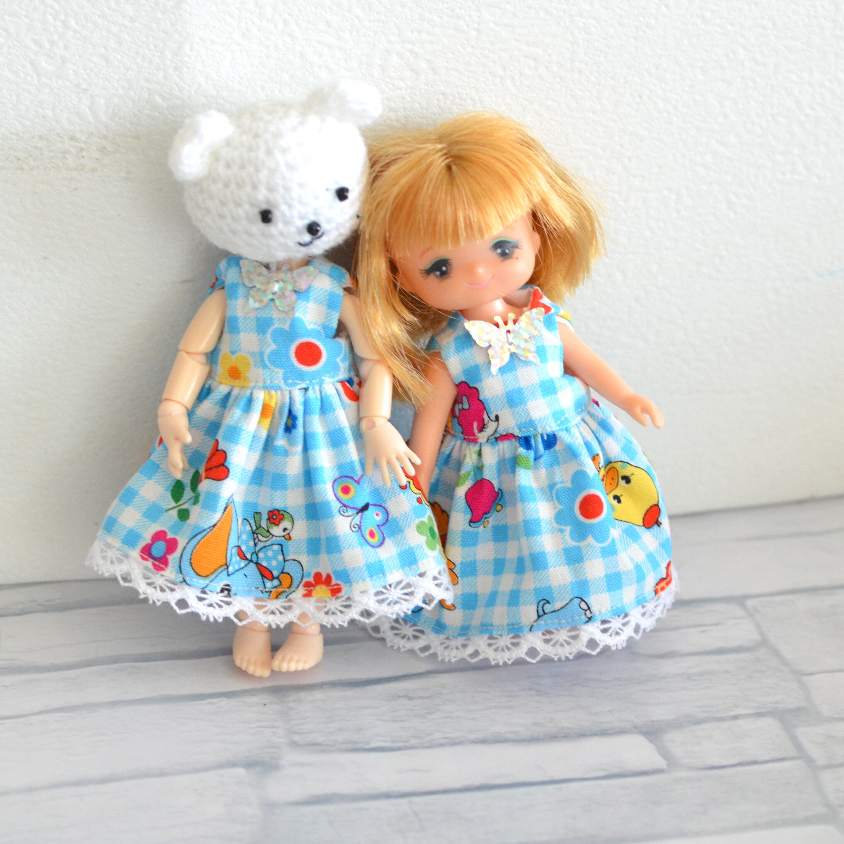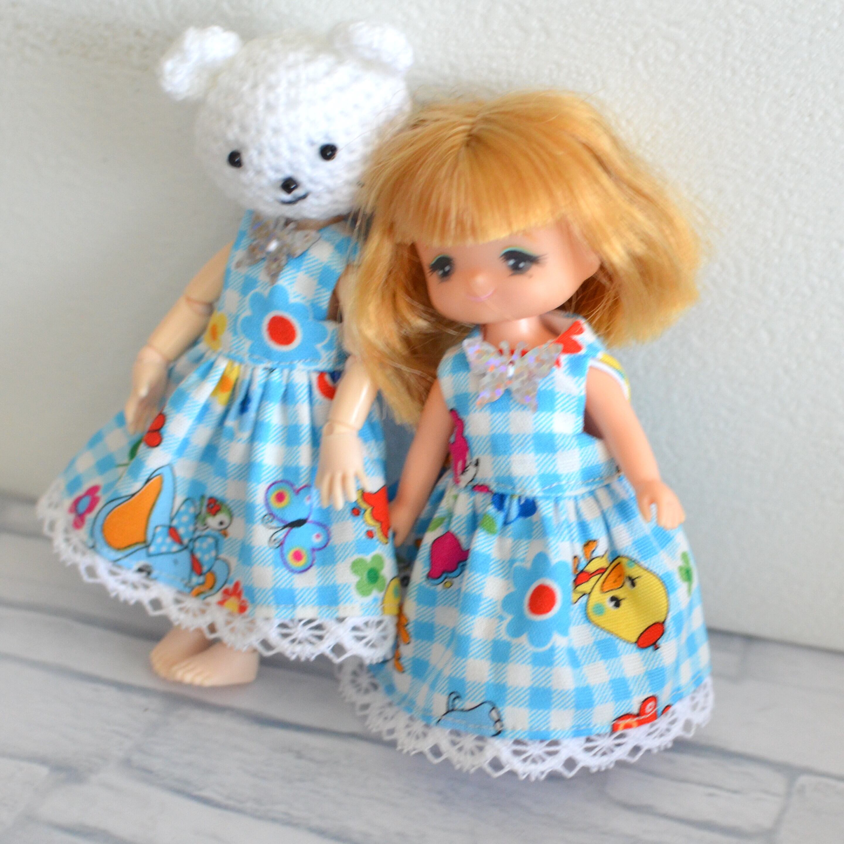 ミキちゃんマキちゃんやオビツ11などのような、11cmドールサイズのワンピースです。