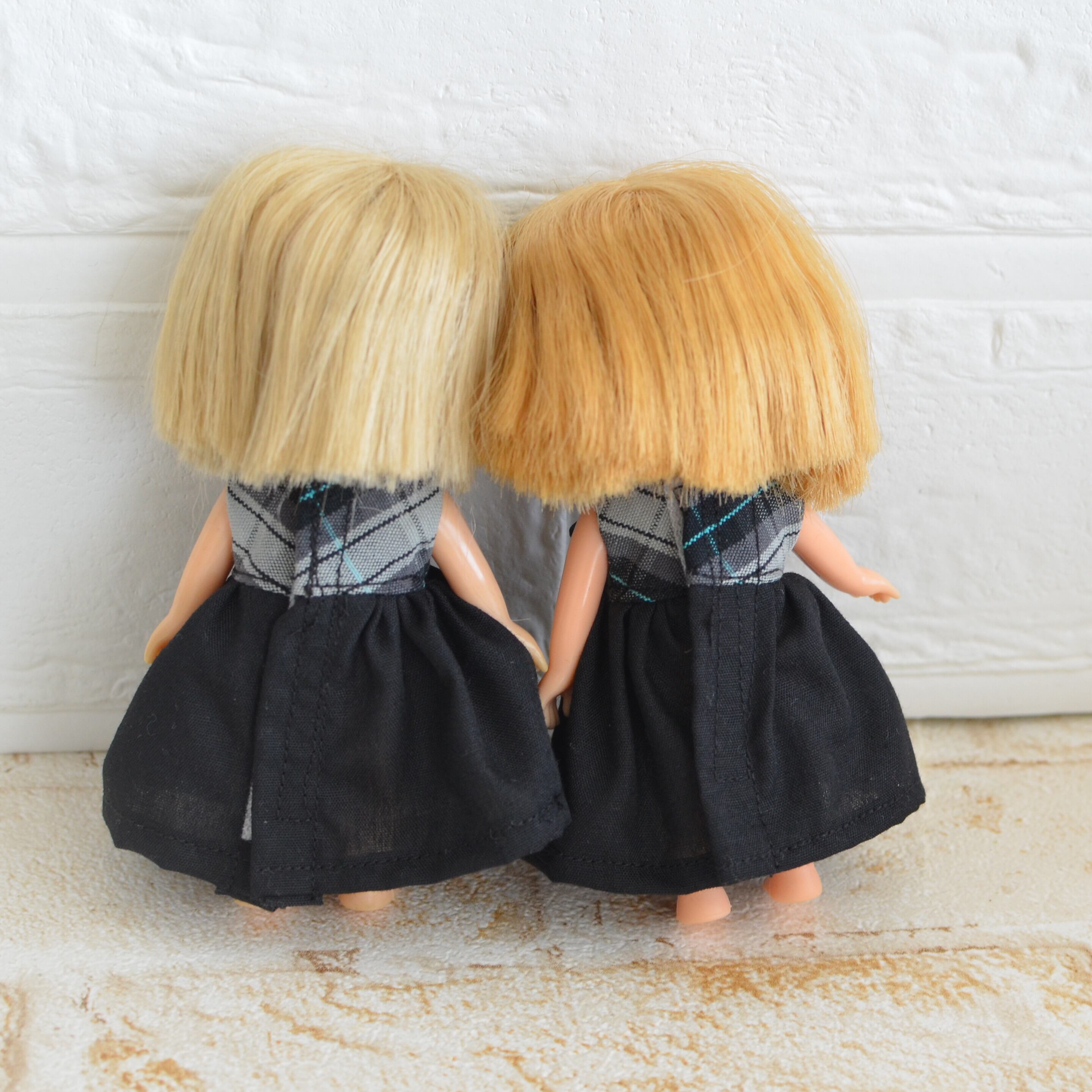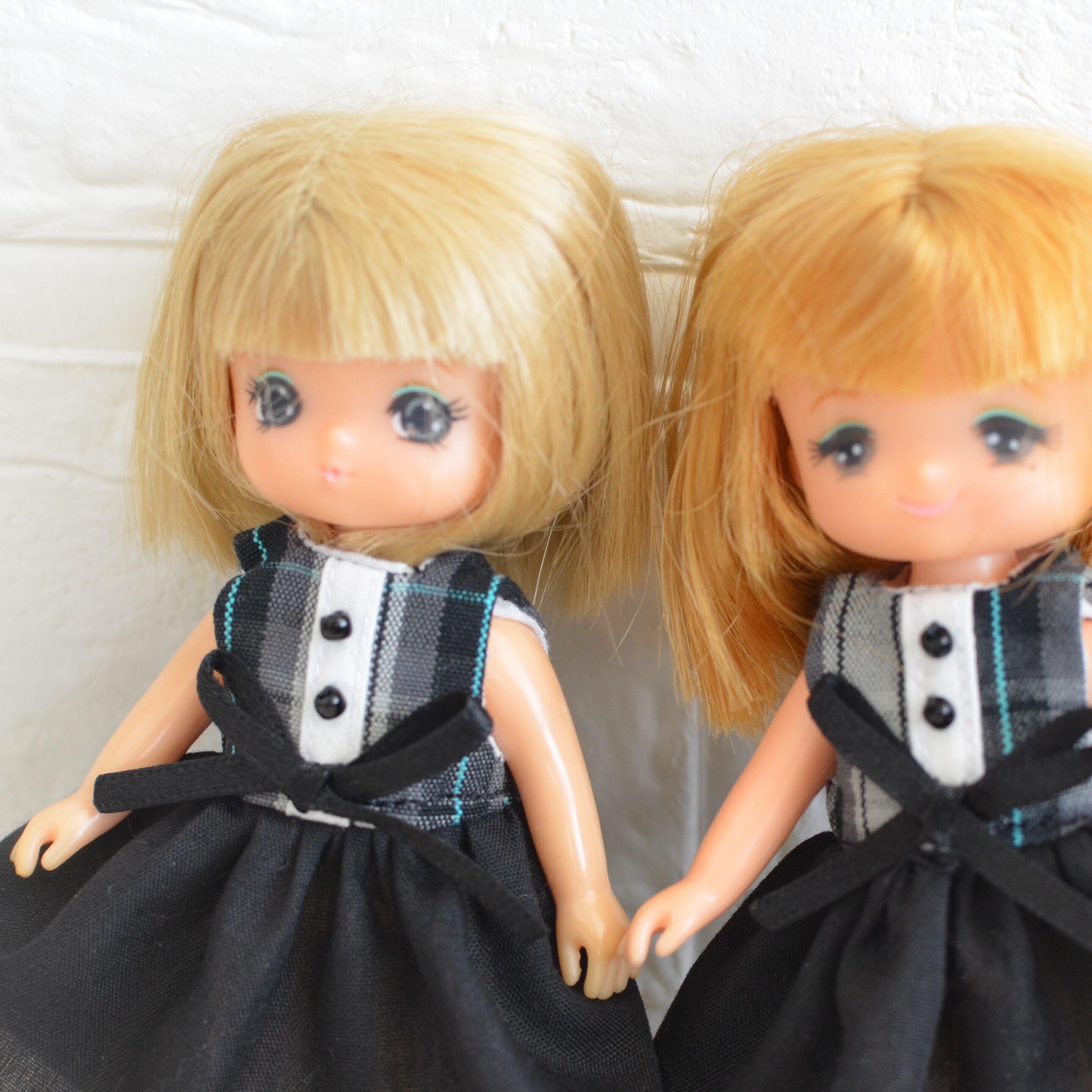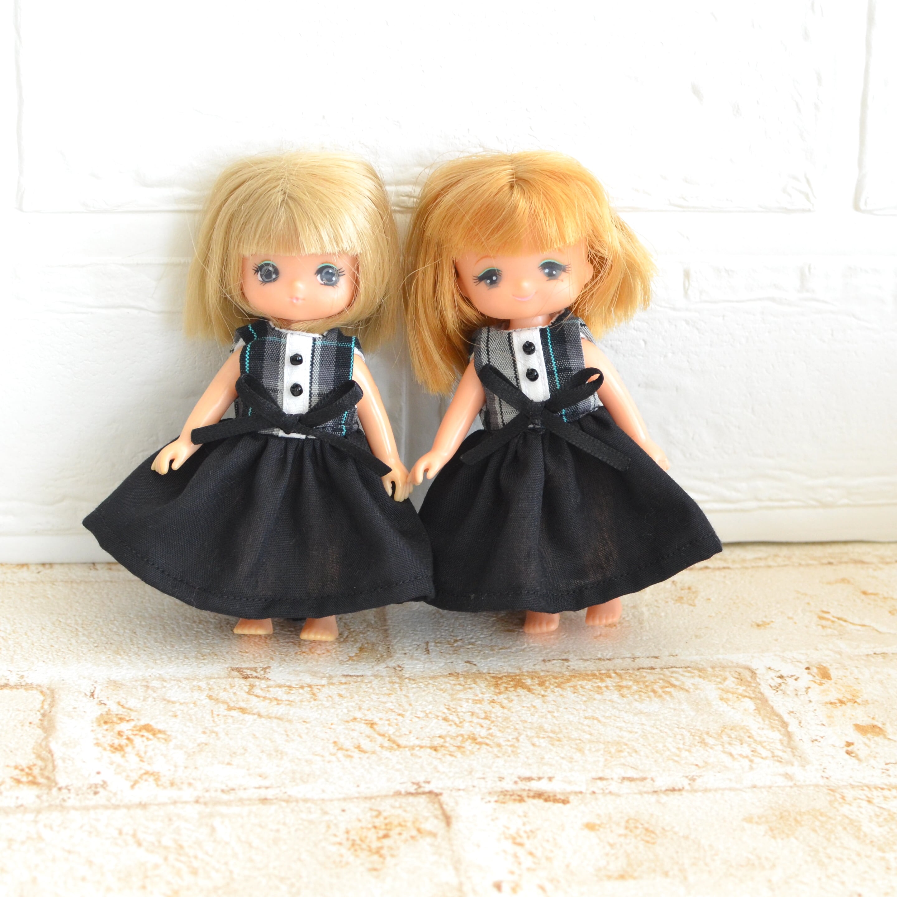 ミキちゃんマキちゃん、オビツ11ボディさんサイズ 黒とチェックのワンピース