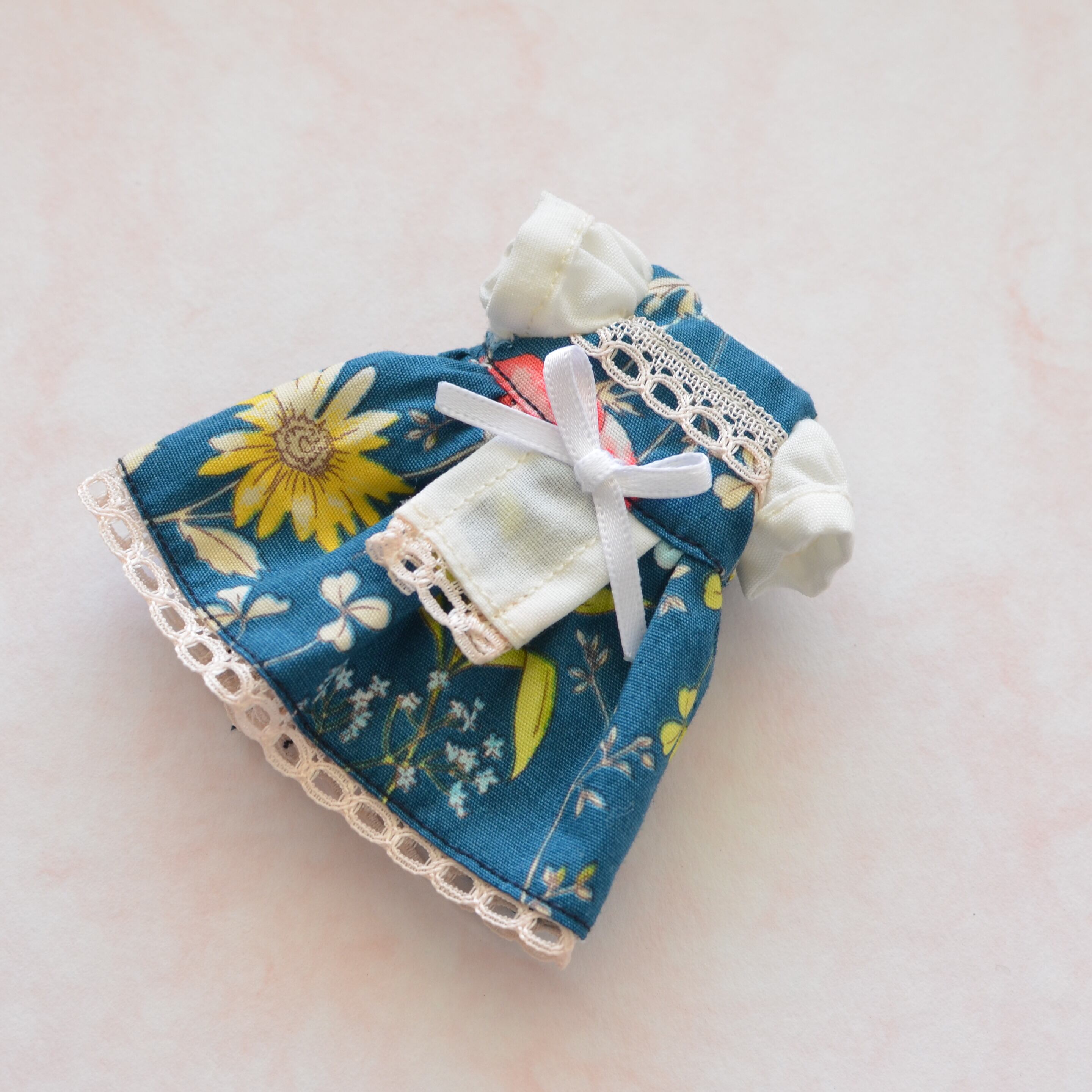ミキちゃんマキちゃん、オビツ11ボディさんサイズ 花柄のワンピース
