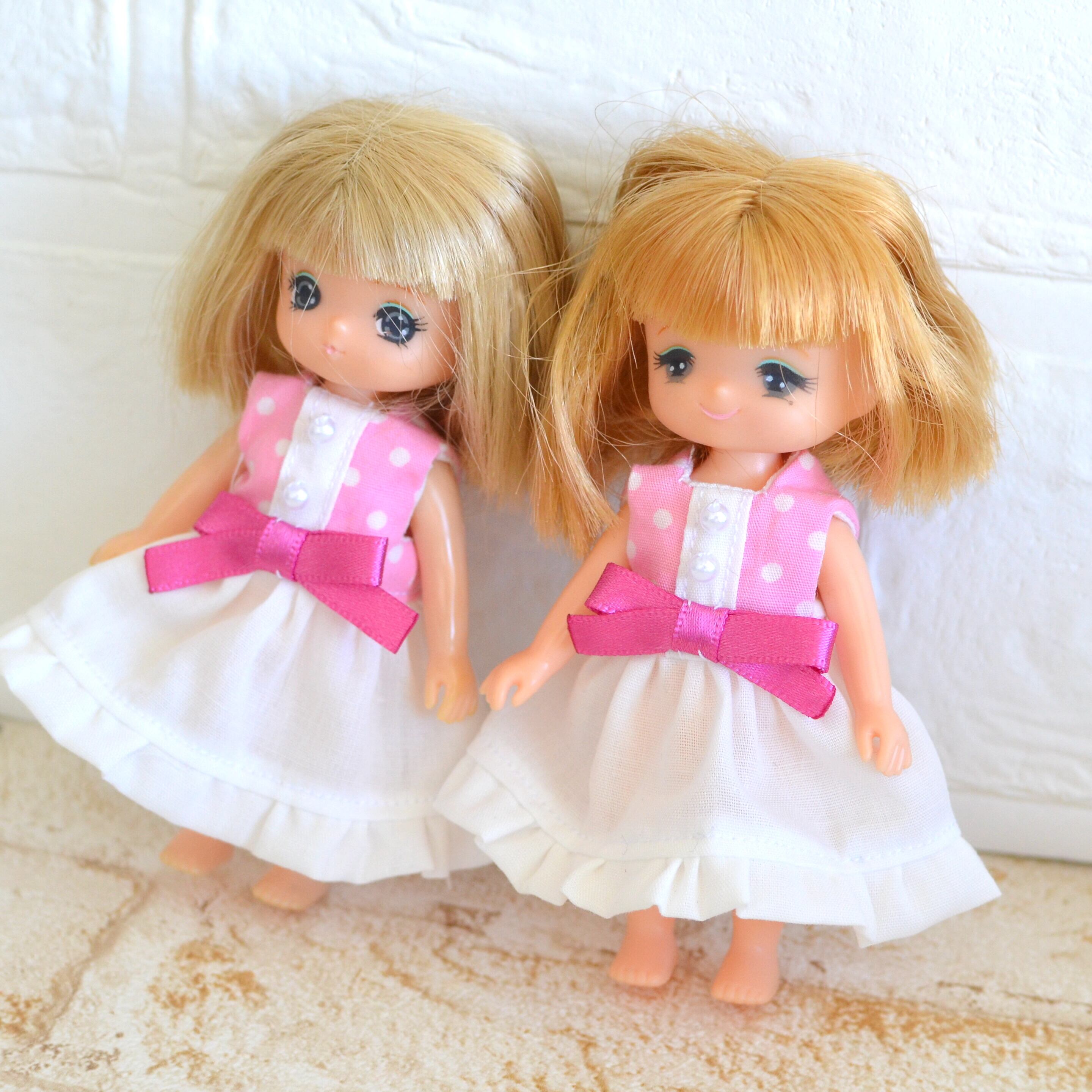 ミキちゃんマキちゃん、 オビツ11ボディさんサイズ ピンク水玉のワンピース