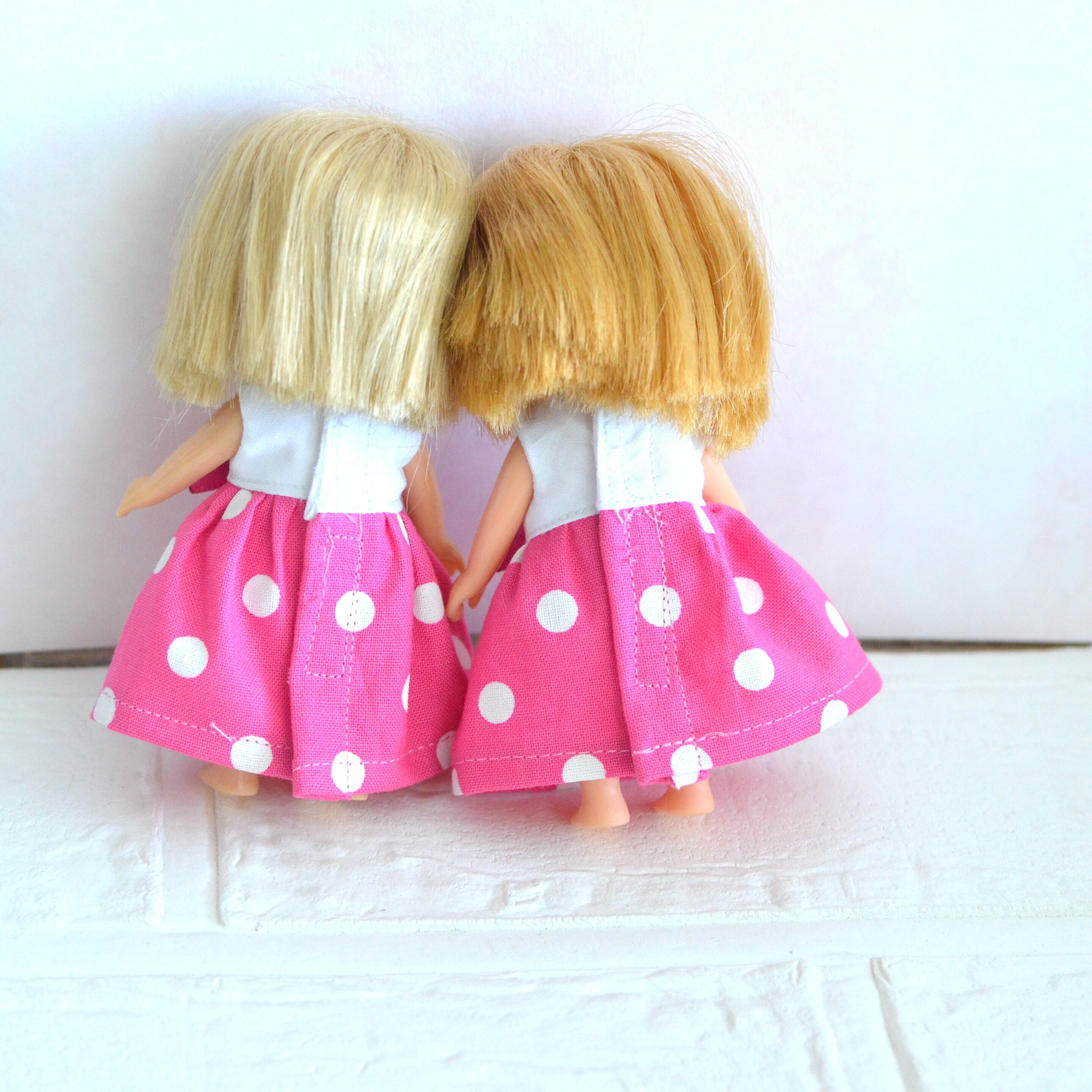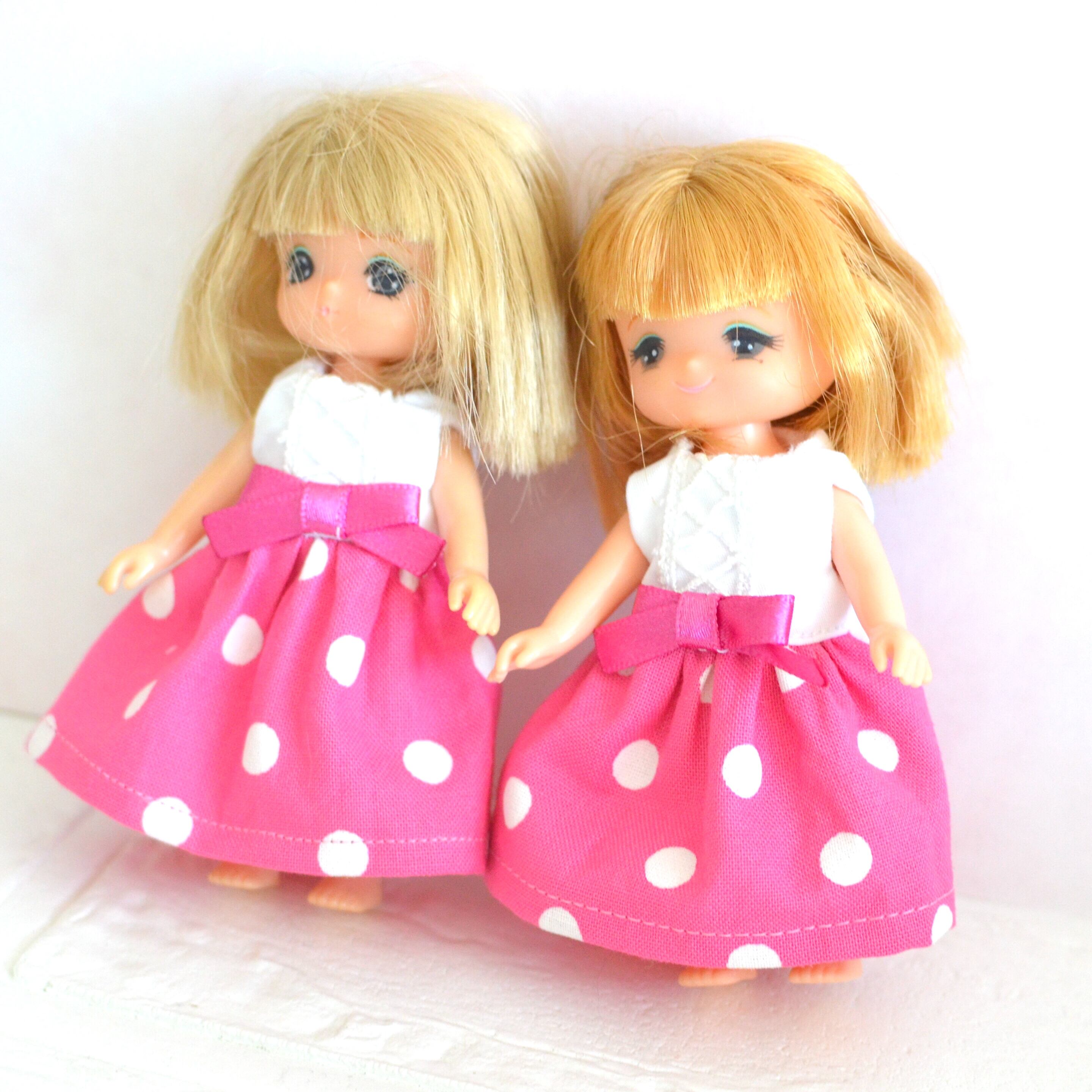ミキちゃんマキちゃん、オビツ11ボディさんサイズ 白とピンクのワンピース