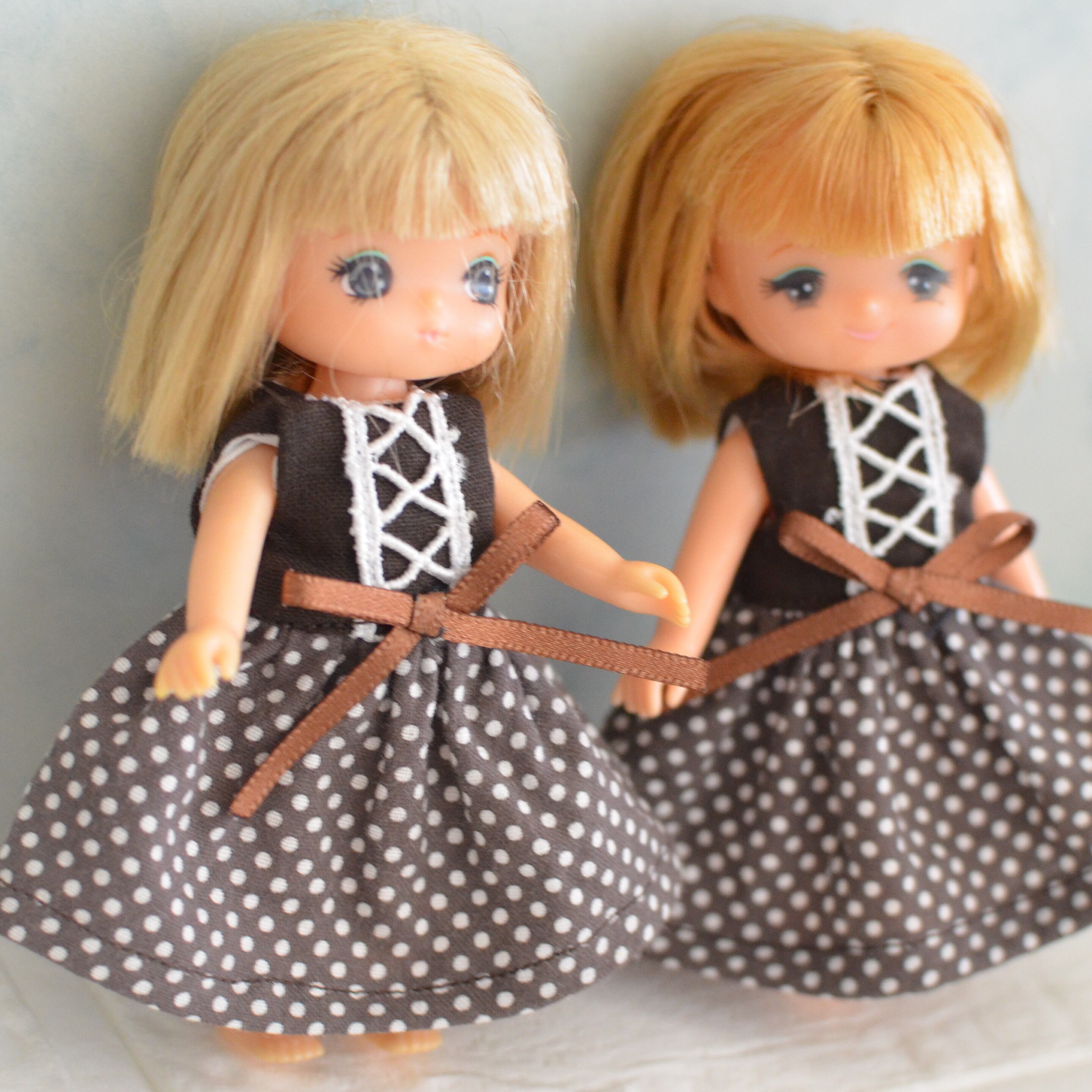 ミキちゃんマキちゃん、オビツ11ボディさんサイズ ブラウンのワンピース