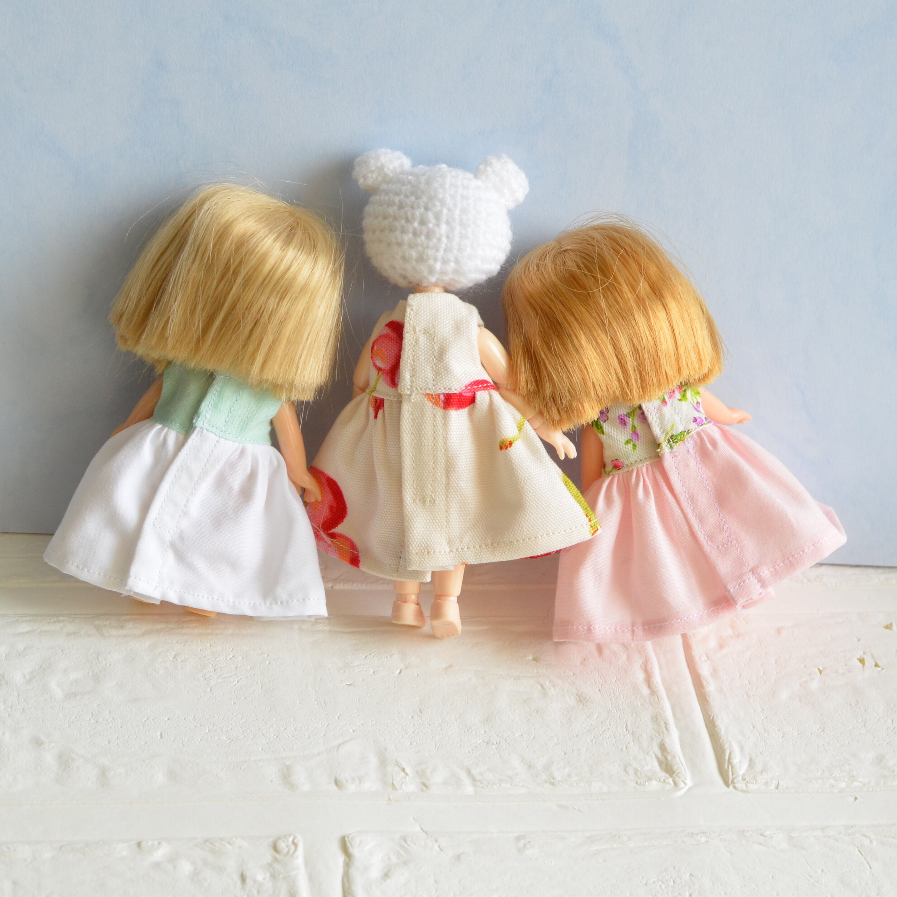 ミキちゃんマキちゃんやオビツ11などのような、11cmドールサイズのワンピースです。