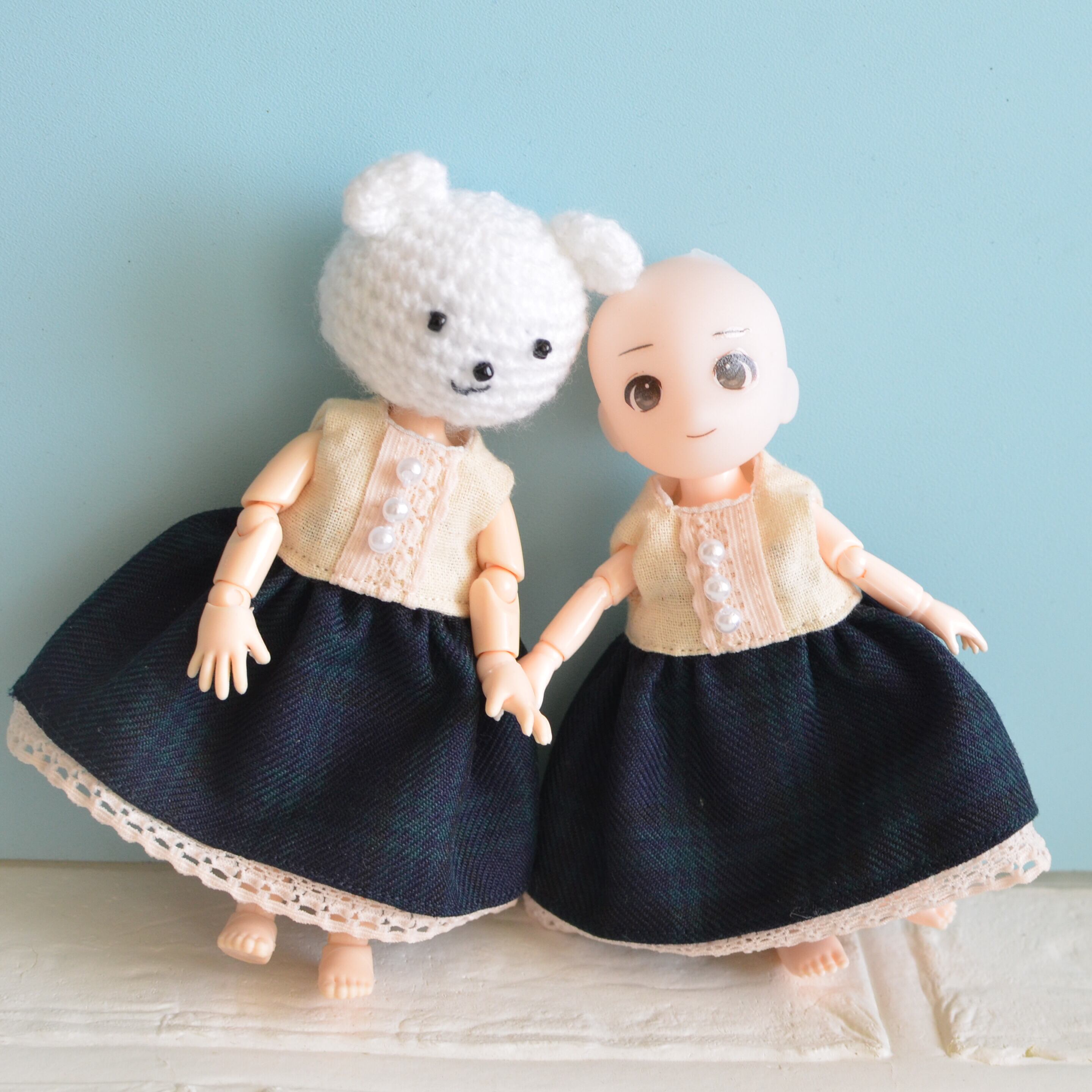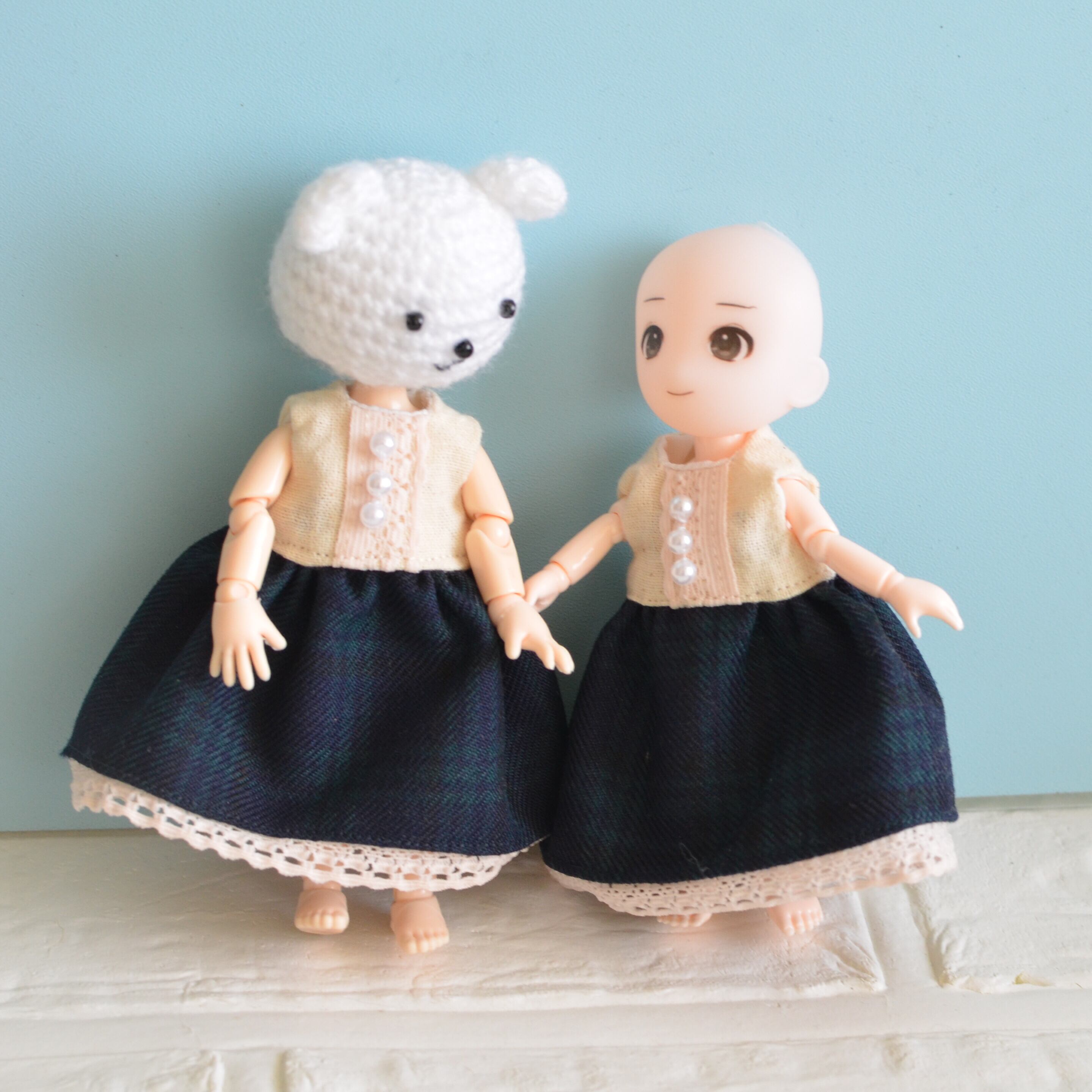 ミキちゃんマキちゃんやオビツ11などのような、11cmドールサイズのワンピースです。